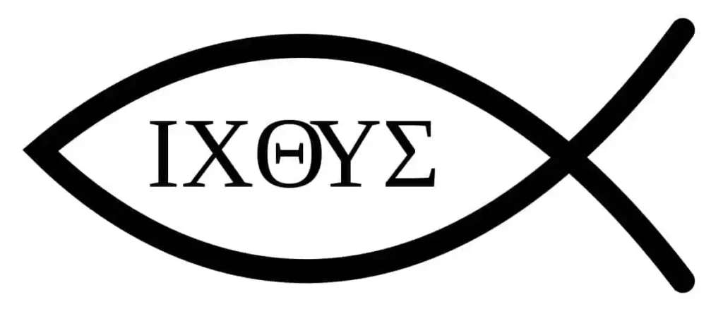 Peut-être avez-vous vu parfois un poisson sur un autocollant collé derrière une voiture ? Il s’agit d’un signe distinctif entre les personnes chrétiennes. Parfois le mot Jésus est écrit au-dedans. Ce signe du poisson était également utilisé par les premiers adeptes afin de se reconnaître incognito lors des persécutions romaines du premier siècle. Il permettait de se reconnaître ou de transmettre des indications vers les lieux de rassemblement.